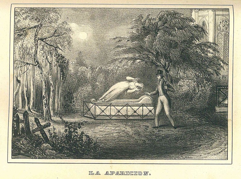 La aparición, litografía en Semanario de las señoritas mejicanas. Educación científica, moral y literaria, del bello sexo, México, Imprenta de Vicente G. Torres, 1841, T. 1. Biblioteca Ernesto de la Torre Villar – Instituto Mora.
