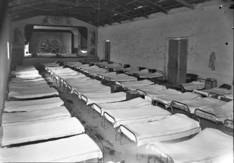 Dormitorio del internado Francisco I. Madero instalado en una antigua sala cinematográfica del parque Francisco I. Madero, ca. 1936. AGN, Fondo Enrique Díaz y Delgado García.
